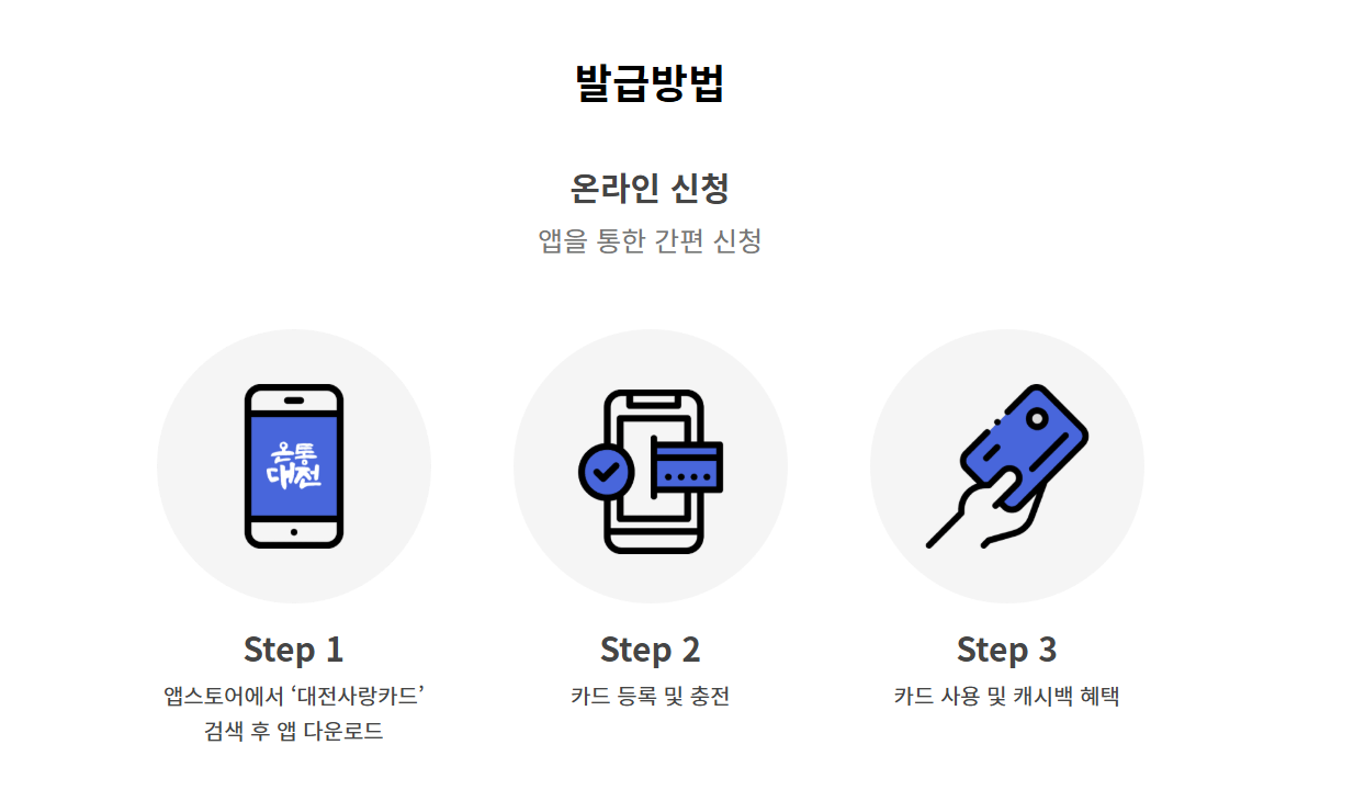 대전사랑카드는 대전사랑카드 모바일앱을 통해 신청할 수 있습니다.